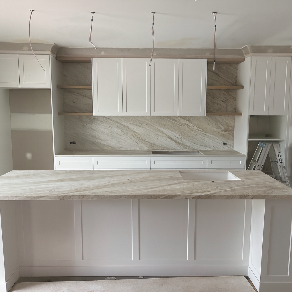 Our team recently completed the stone installation for this stunning kitchen in ‘Natural Taj Mahal’ - a timeless choice with soft, warm writing and elegant movement that elevates any space.